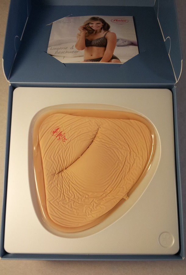Sovitellessani uutta proteesia josta kerroin täällä, huomasimme Syöpäyhdistyksen hoitajan kanssa ettei Amoenan proteesit sopineet minulle yhtään. Proteesiksi valikoitui siis jo toistamiseen Anitan silikonisäkki, tällä kertaa jopa kaksi pykälää isompi. Hoitajan sanoin isoin ”kymppi-koko” mitä heiltä kys. proteesia löytyy. Mielestäni kumitissini ei näytä kovin isolta päällä, mutta kädessä punniten se on aikamoinen mätisäkki. Proteesi tuntuu painavammalta kuin oikeasti onkaan, uusi proteesini painaa vain hiukan yli 640 grammaa, kun edellinen proteesi (vaikka oli mukamas erikoiskevyt!) painoi muistaakseni yli 900 grammaa. Punnitsin sen jossain vaiheessa mutten tietenkään muistanut merkitä painoa ylös.