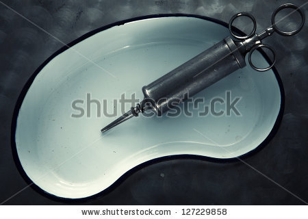 Voi olla, että fiksaationi tuohon muottiin pohjaa siihen, että olen aina kokenut kaikki lääketieteelliset aparaatit, vekottimet ja välineet hirveän mielenkiintoisina ja hienoina. Mitä vanhempi, romumpi ja oudompi, sitä hienompi. Himoitsen koriste-esineiksi vähän kaikkea vanhoista metallisista ja lasisista ruiskuista erilaisiin pihteihin, sahoihin ja astioihin. Jos se olisi minusta kiinni, niin meillä käytettäisiin juomalaseina erlenmeyer-pulloja ja  syötäisiin vanhoista keraamisista tai emalisista sylkykupeista (mikä ikinä niitten oikea nimi onkaan, kaarimalja?)
